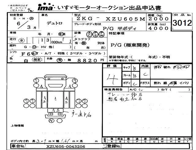 Статус выставлен на аукцион Лот 3012 Аукцион Isuzu Tokyo Дата аукциона 11.03.2026