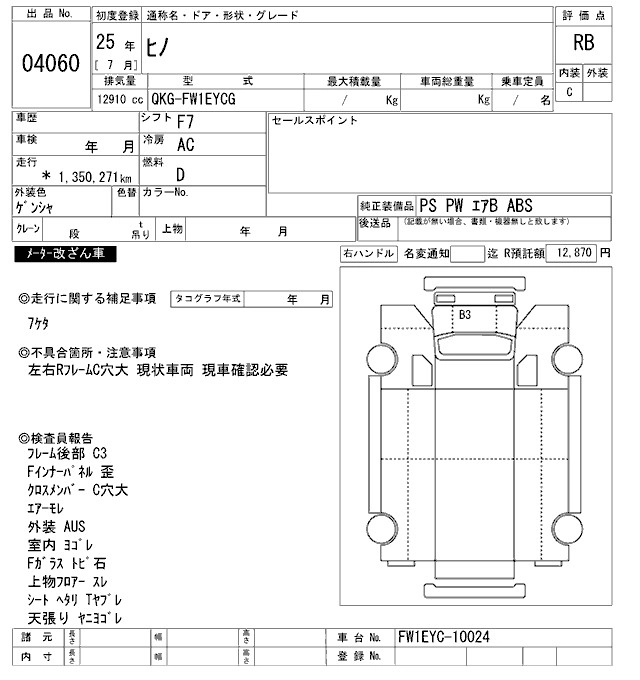 Год выпуска2013 Пробег 1 350 000 км КузовFW1EYCG Комплектация CHASSIS