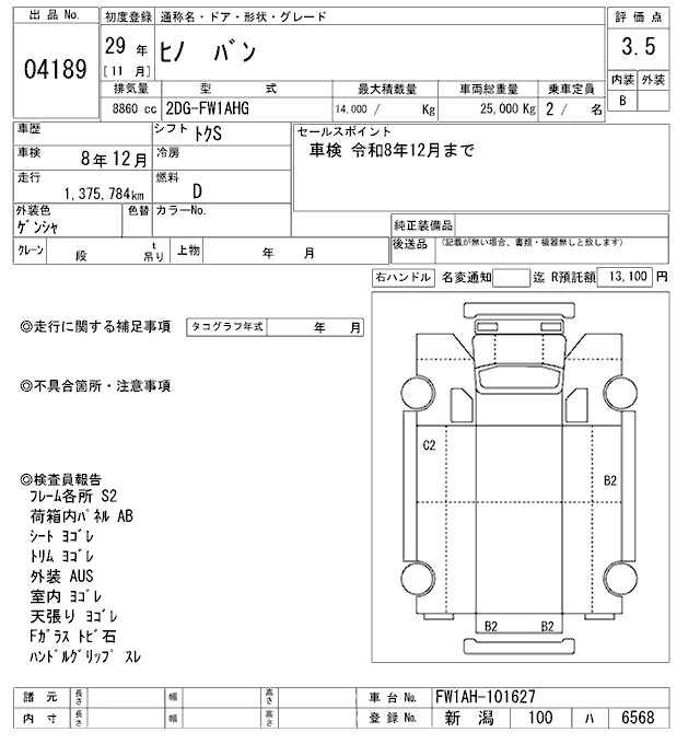 Год выпуска2017 Пробег 1 376 000 км КузовFW1AHG Комплектация VAN