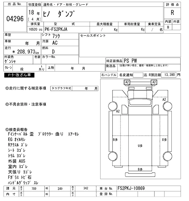 Год выпуска2006 Пробег 209 000 км КузовFS2PKJA Комплектация DUMP