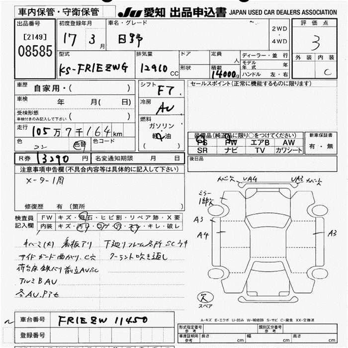 Статус выставлен на аукцион Лот 8585 Аукцион JU Aichi Дата аукциона 12.03.2026
