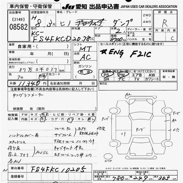Год выпуска1996 Пробег 870 000 км КузовFS4FKCD Комплектация DUMP 8.7T