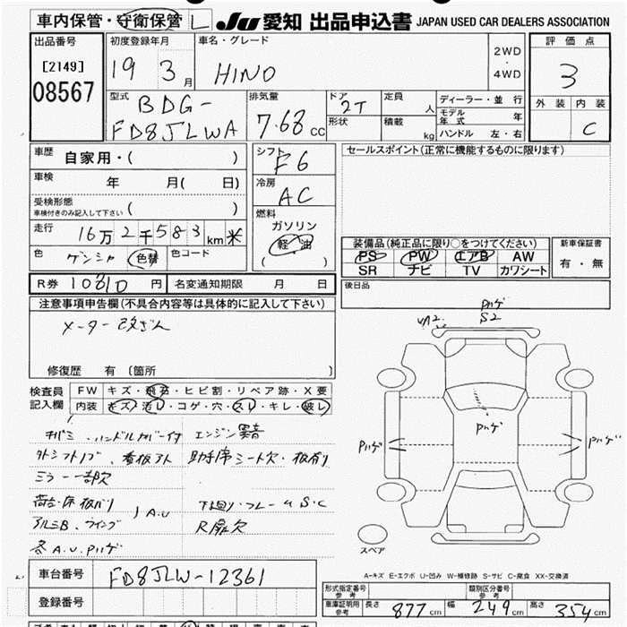 Статус выставлен на аукцион Лот 8567 Аукцион JU Aichi Дата аукциона 12.03.2026