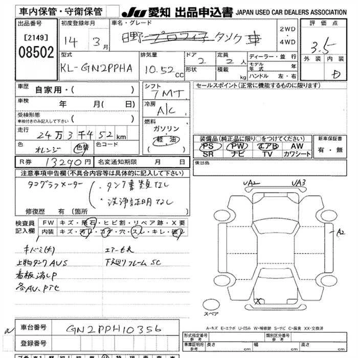 Статус выставлен на аукцион Лот 8502 Аукцион JU Aichi Дата аукциона 12.03.2026
