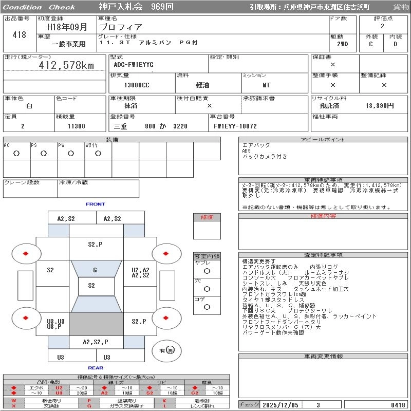 Год выпуска2006 Пробег 413 000 км КузовFW1EYYG Комплектация11.3T ALUMINUM VAN PG ATTACHING