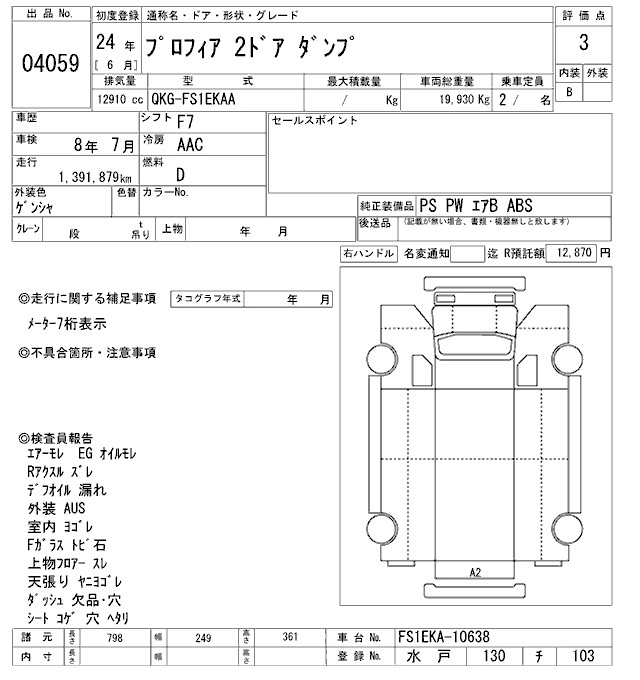 Год выпуска2012 Пробег 1 392 000 км КузовFS1EKAA Комплектация DUMP