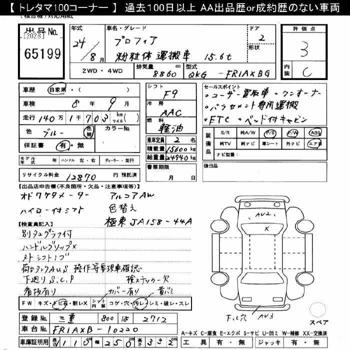 Год выпуска2012 Пробег 999 000 км КузовFR1AXBG КомплектацияFNRYUU MANY I TRANSPORT 15.6T