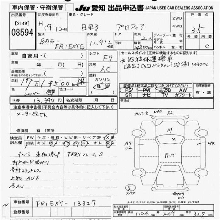 Статус выставлен на аукцион Лот 8594 Аукцион JU Aichi Дата аукциона 12.03.2026