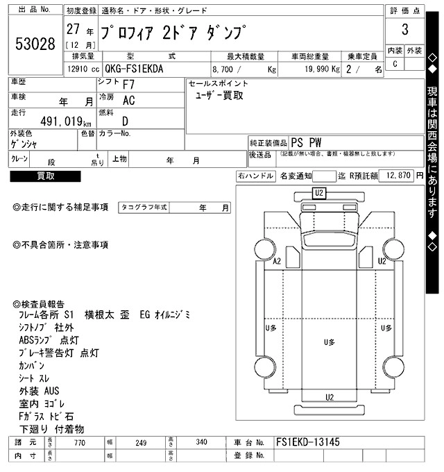 Год выпуска2015 Пробег 491 000 км КузовFS1EKDA Комплектация DUMP