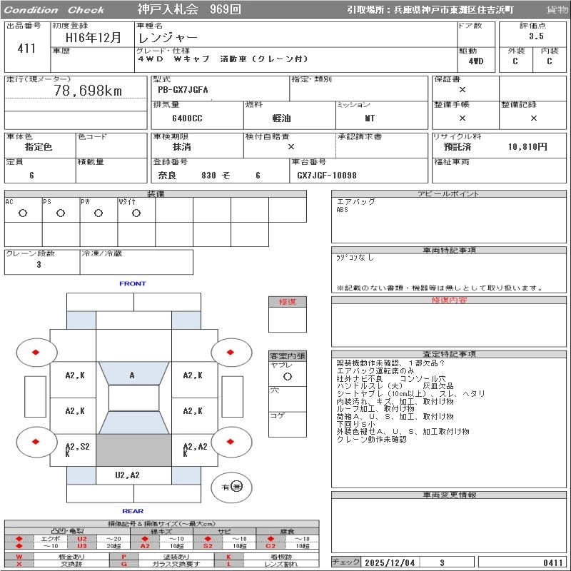 Статус выставлен на аукцион Лот 411 Аукцион ORIX Kobe Дата аукциона 09.12.2025