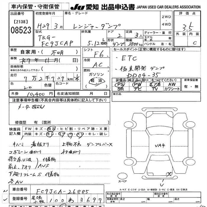 Статус выставлен на аукцион Лот 8523 Аукцион JU Aichi Дата аукциона 11.12.2025