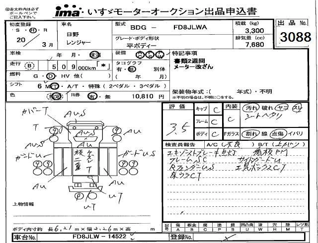 HINO RANGER 2008 г., лот № 3088