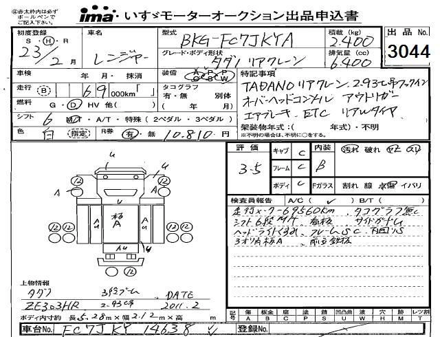 Год выпуска2011 Пробег 69 000 км КузовFC7JKYA Комплектация CRANE ATTACHING