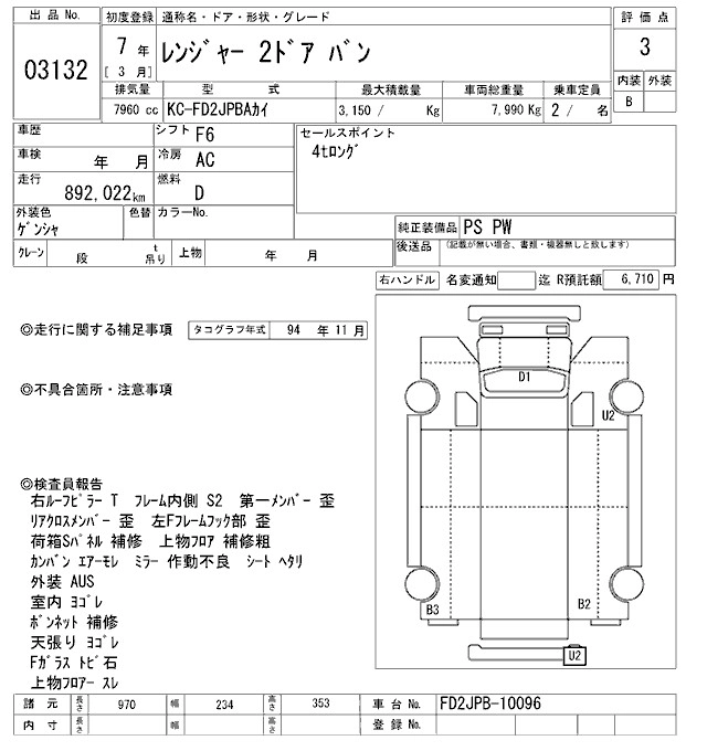 Год выпуска1995 Пробег 892 000 км КузовFD2JPBA Комплектация ALUMINUM VAN