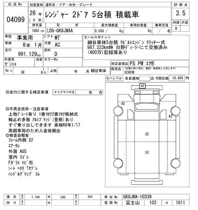 Год выпуска2014 Пробег 991 000 км КузовGK8JWAA Комплектация CARRIER CAR