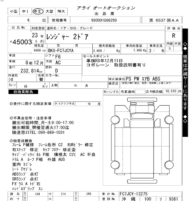 Год выпуска2011 Пробег 233 000 км КузовFC7JCYA Комплектация DUMP