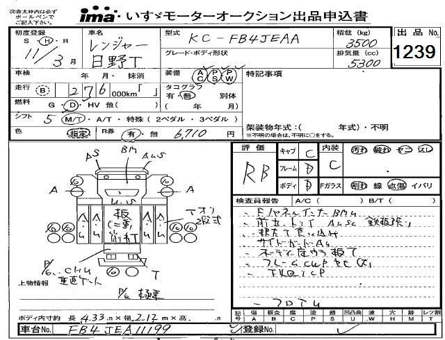 HINO RANGER 1999 г., лот № 1239