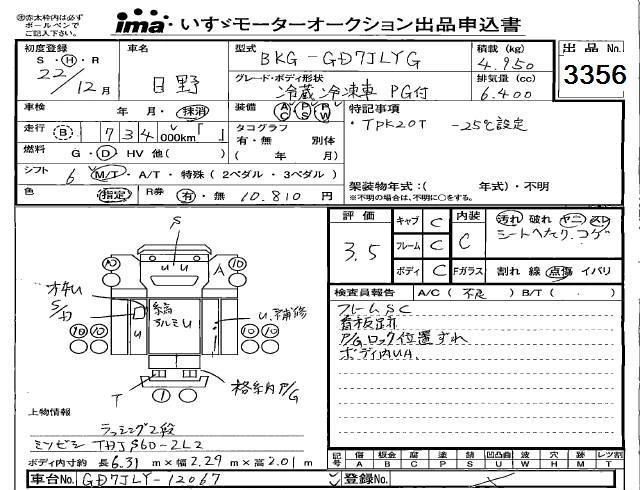 HINO RANGER 2010 г., лот № 3356