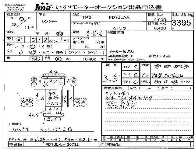HINO RANGER 2016 г., лот № 3395