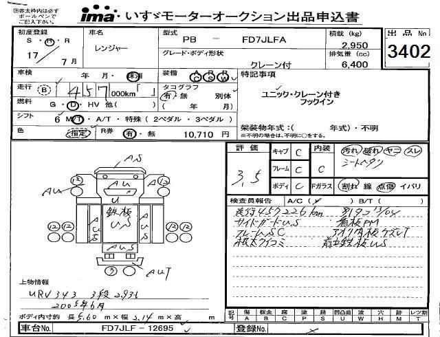 Год выпуска2005 Пробег 457 000 км КузовFD7JLFA Комплектация CRANE ATTACHING