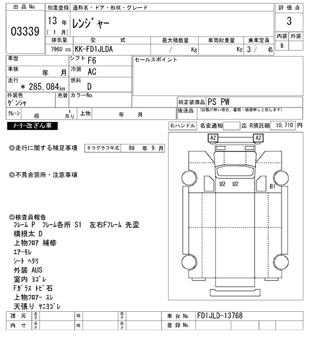 Год выпуска2001 Пробег 285 000 км КузовFD1JLDA