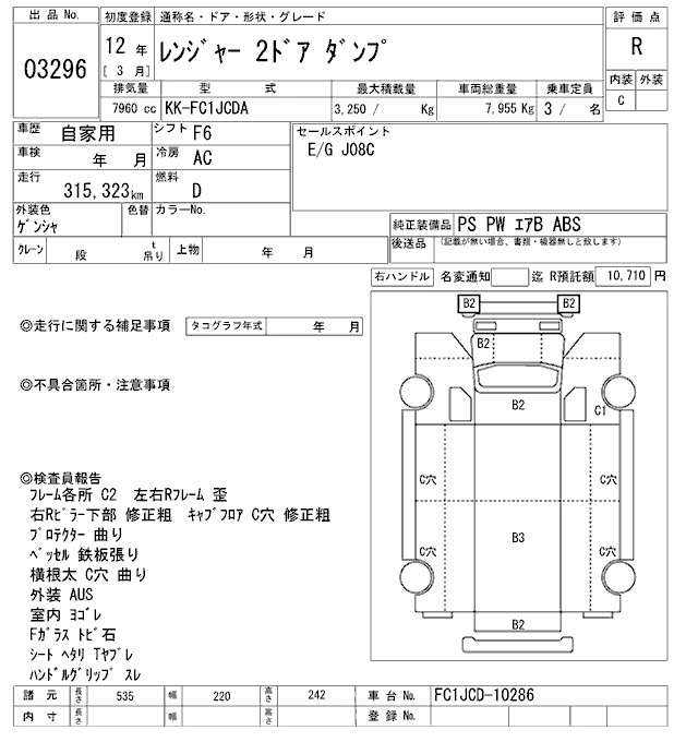 Год выпуска2000 Пробег 315 000 км КузовFC1JCDA Комплектация DUMP