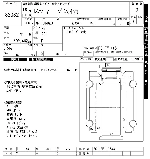 Год выпуска2004 Пробег 609 000 км КузовFC1JGEA Комплектация GARBAGE