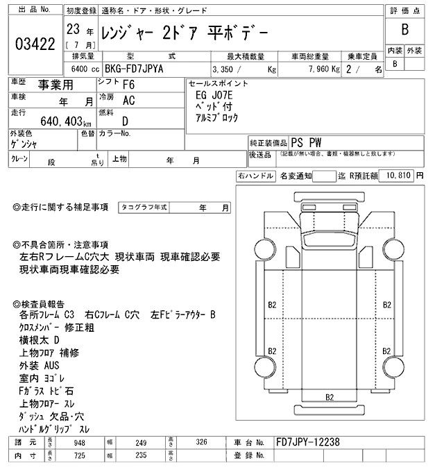Год выпуска2011 Пробег 640 000 км КузовFD7JPYA Комплектация COMMON. ALUMINIUM B