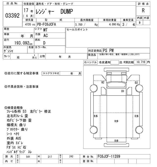 Год выпуска2005 Пробег 193 000 км КузовFC6JCFA Комплектация DUMP