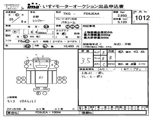 Статус выставлен на аукцион Лот 1012 Аукцион Isuzu Tokyo Дата аукциона 11.03.2026