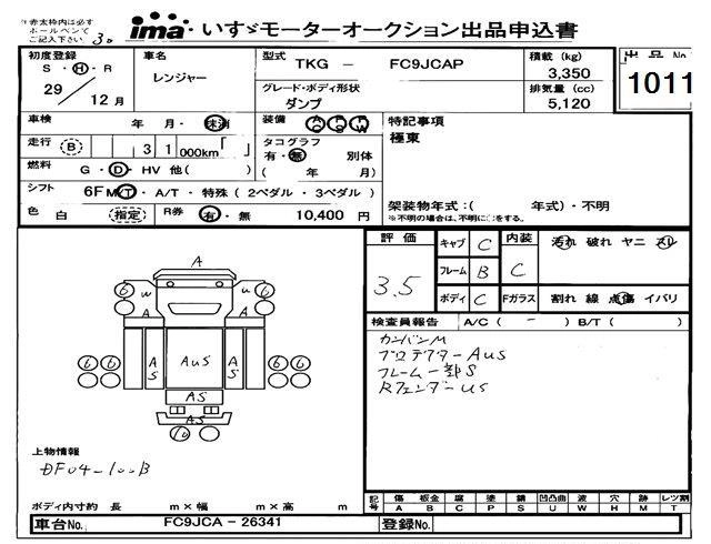 Статус выставлен на аукцион Лот 1011 Аукцион Isuzu Tokyo Дата аукциона 11.03.2026