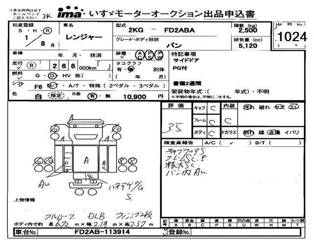 Статус выставлен на аукцион Лот 1024 Аукцион Isuzu Tokyo Дата аукциона 11.03.2026
