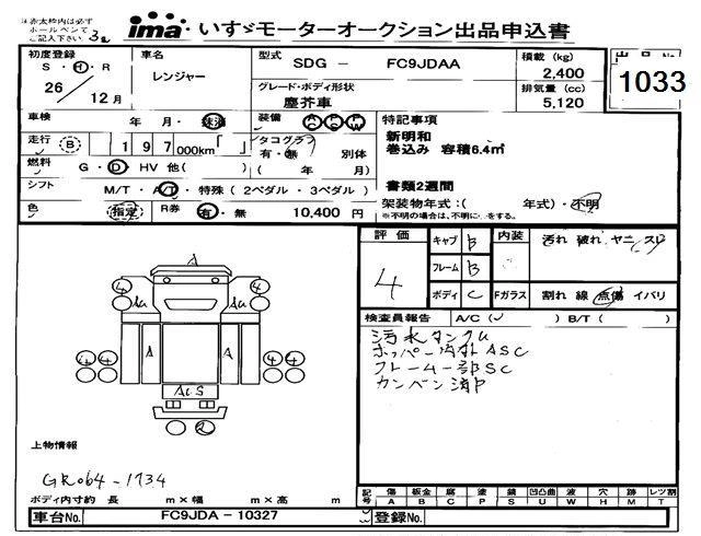 Статус выставлен на аукцион Лот 1033 Аукцион Isuzu Tokyo Дата аукциона 11.03.2026