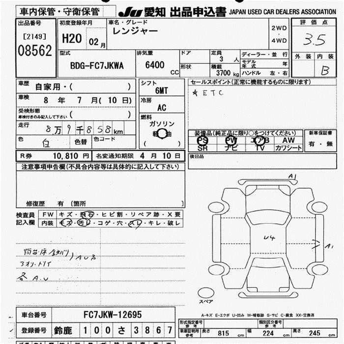 Статус выставлен на аукцион Лот 8562 Аукцион JU Aichi Дата аукциона 12.03.2026