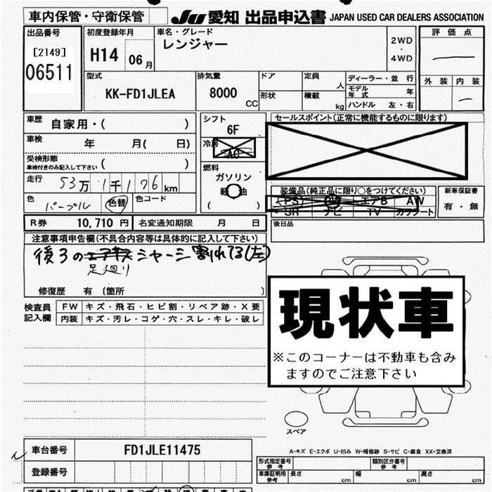 Статус выставлен на аукцион Лот 6511 Аукцион JU Aichi Дата аукциона 12.03.2026