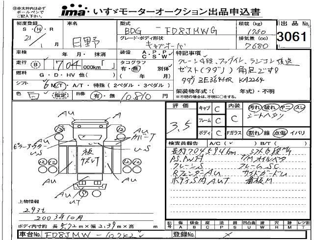 Статус выставлен на аукцион Лот 3061 Аукцион Isuzu Kobe Дата аукциона 13.03.2026