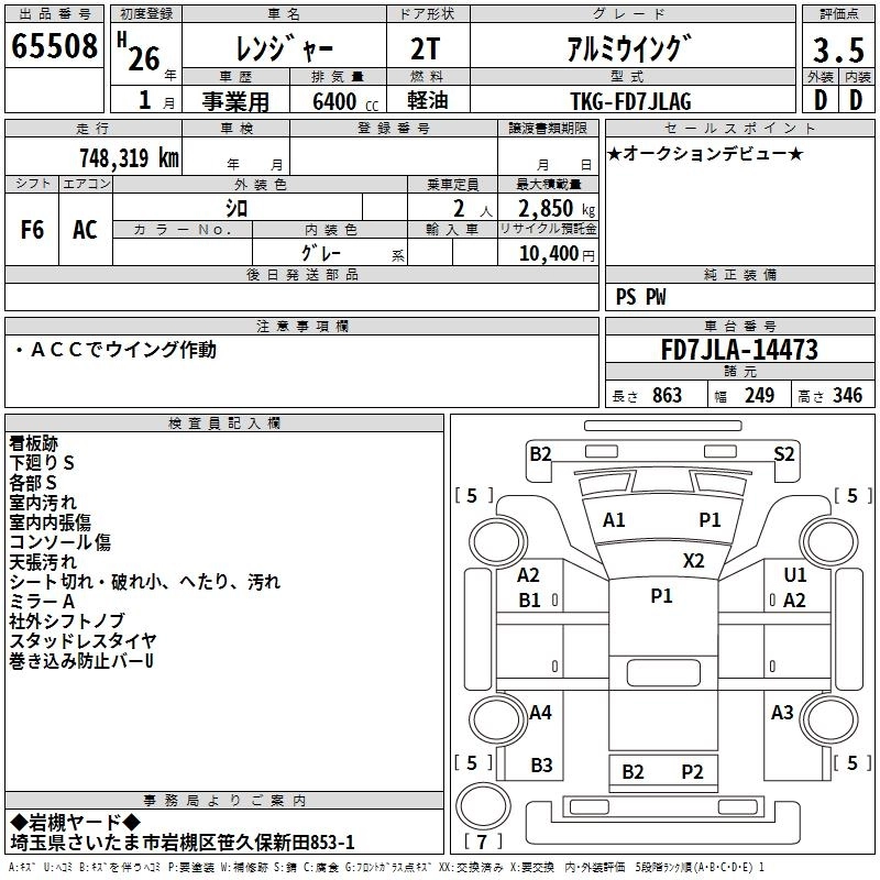 Статус выставлен на аукцион Лот 65508 Аукцион TAA Kantou Дата аукциона 12.03.2026
