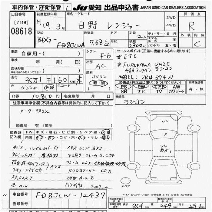 HINO RANGER 2007 г., лот № 8618