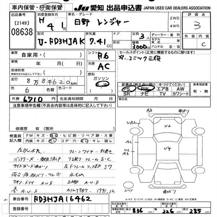 Статус выставлен на аукцион Лот 8638 Аукцион JU Aichi Дата аукциона 12.03.2026
