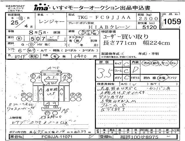 Статус выставлен на аукцион Лот 1059 Аукцион Isuzu Kyushu Дата аукциона 12.03.2026