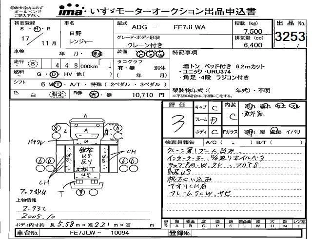 Год выпуска2005 Пробег 448 000 км КузовFE7JLWA Комплектация CRANE ATTACHING