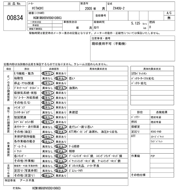 HITACHI OTHER 2005 г., лот № 834
