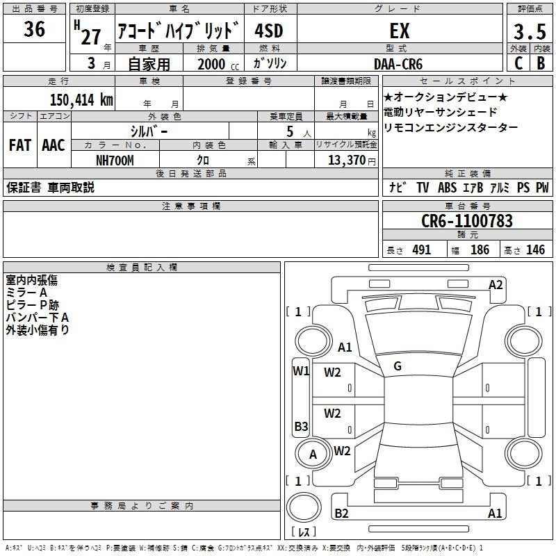 HONDA ACCORD HYBRID 2015 г., лот № 36