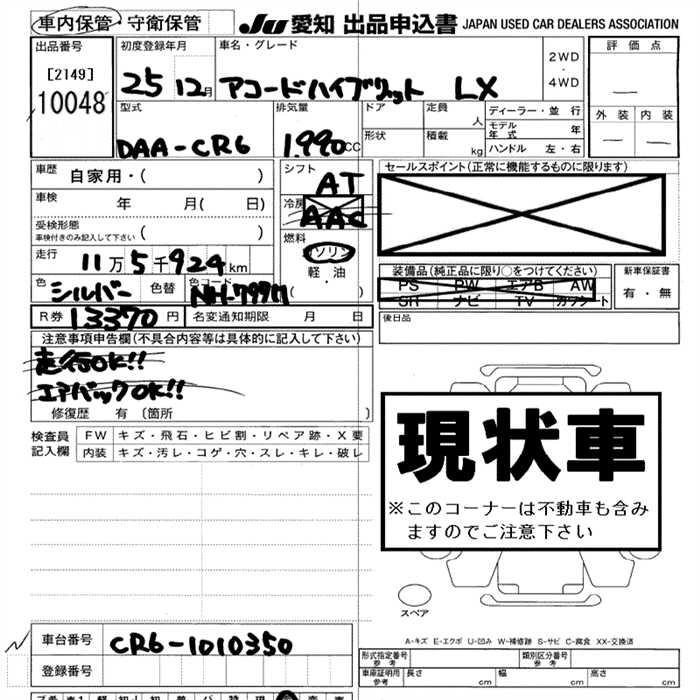 Статус выставлен на аукцион Лот 10048 Аукцион JU Aichi Дата аукциона 12.03.2026