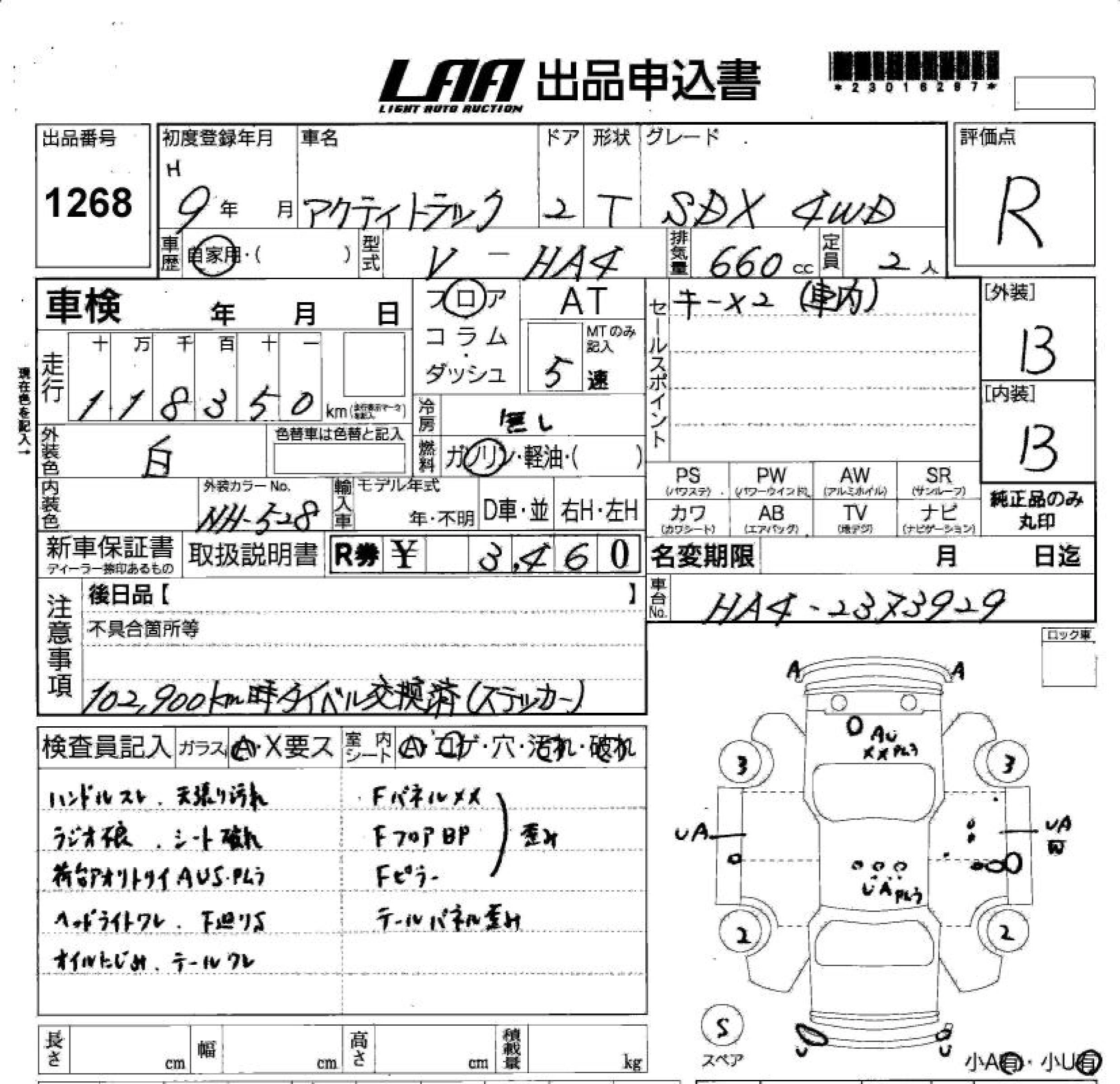 HONDA ACTY TRUCK 1997 г., лот № 1268
