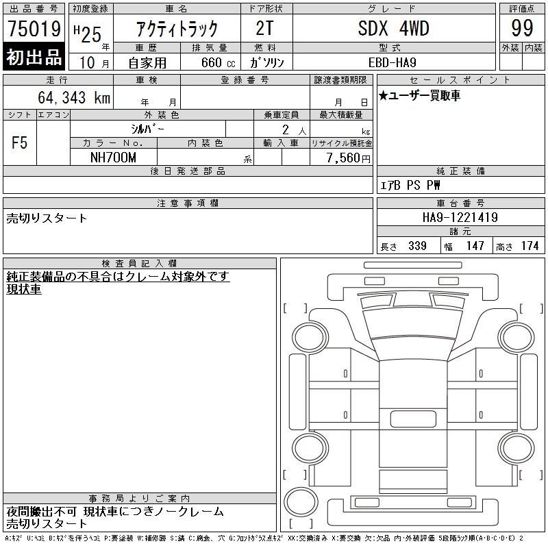 Статус выставлен на аукцион Лот 75019 Аукцион CAA Chubu Дата аукциона 24.12.2025