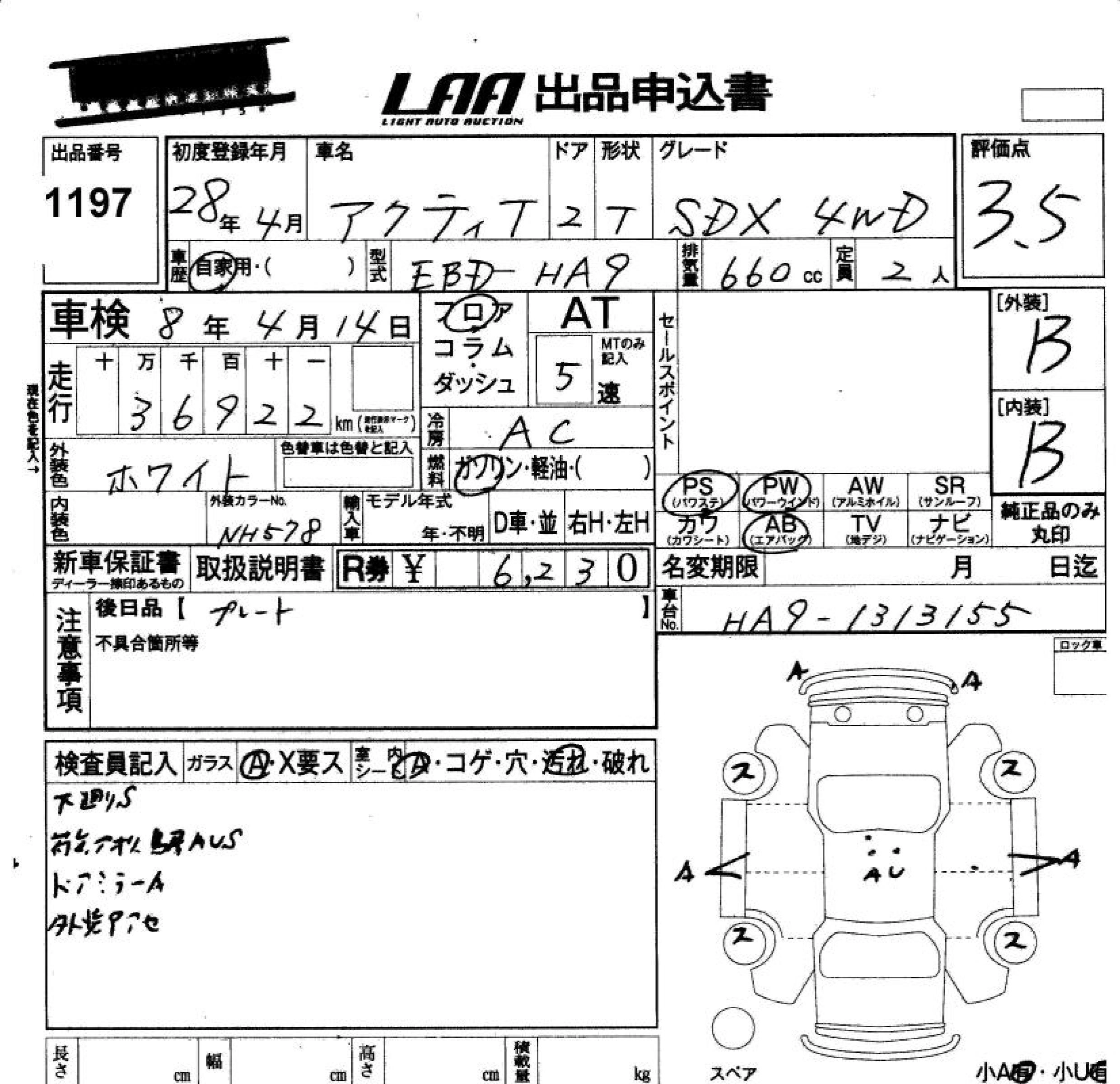 Статус не продан Лот 1197 Аукцион LAA Okayama Дата аукциона 23.01.2026