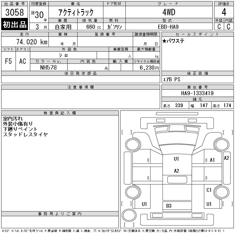 HONDA ACTY TRUCK 2018 г., лот № 3058