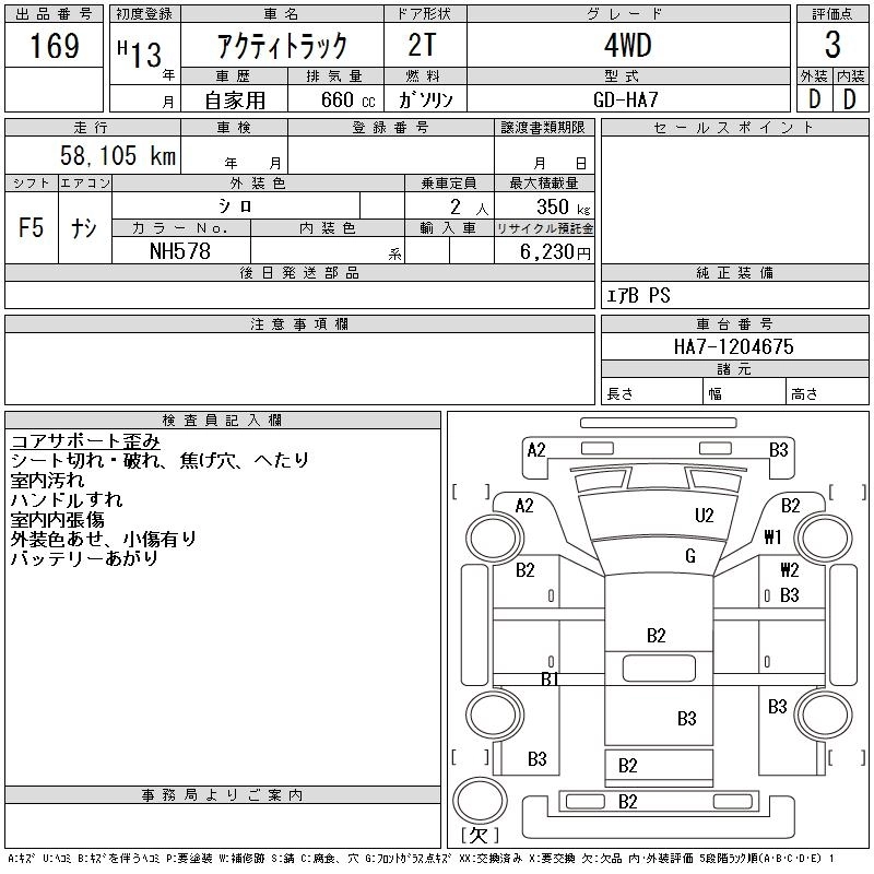 HONDA ACTY TRUCK 2001 г., лот № 169