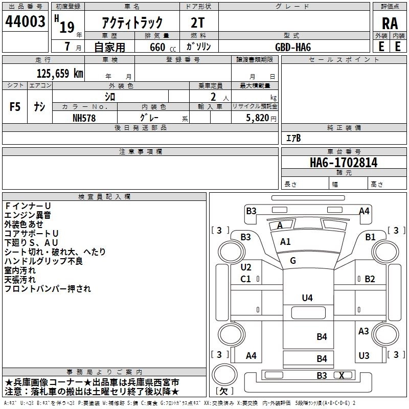 HONDA ACTY TRUCK 2007 г., лот № 44003